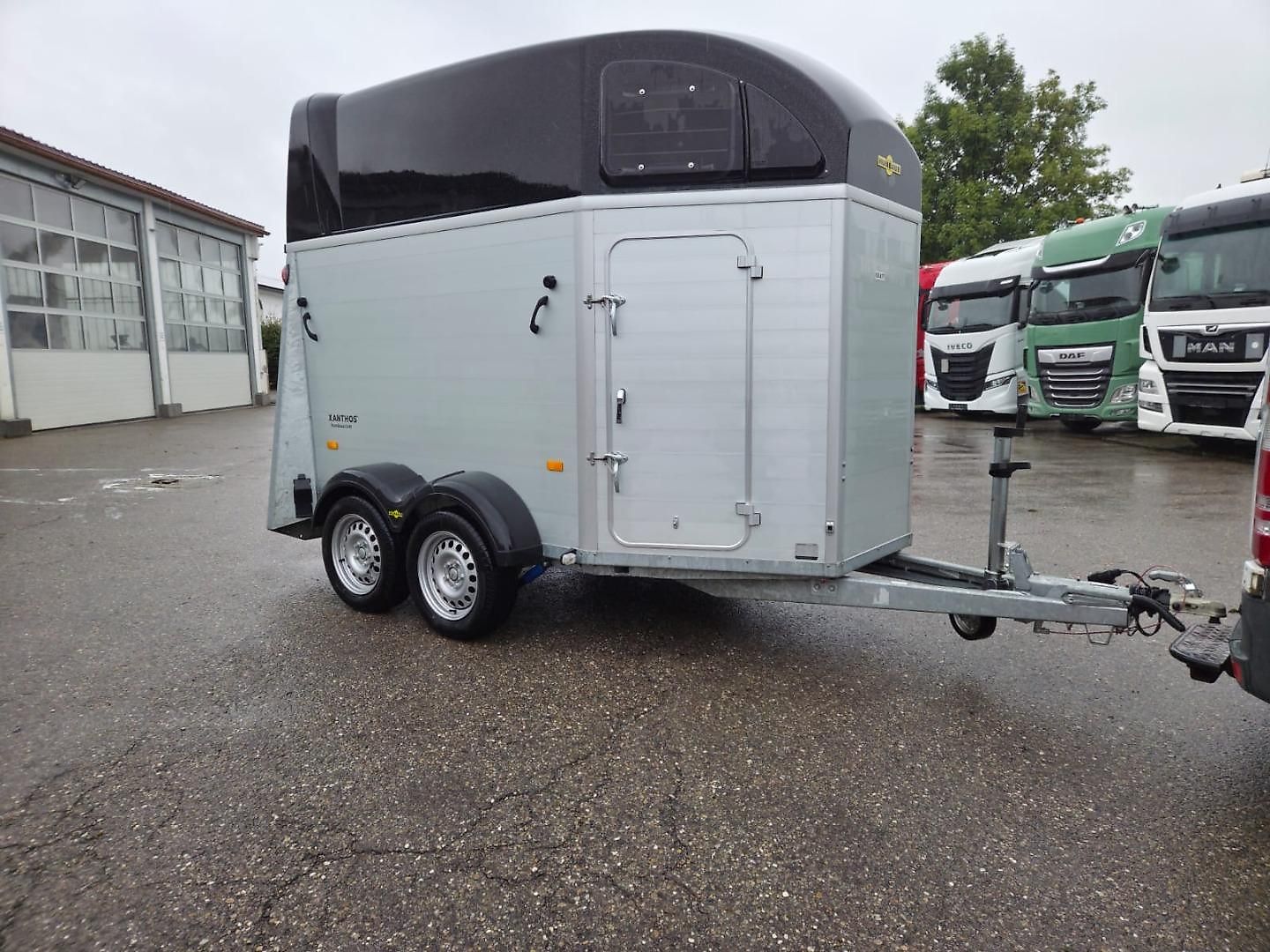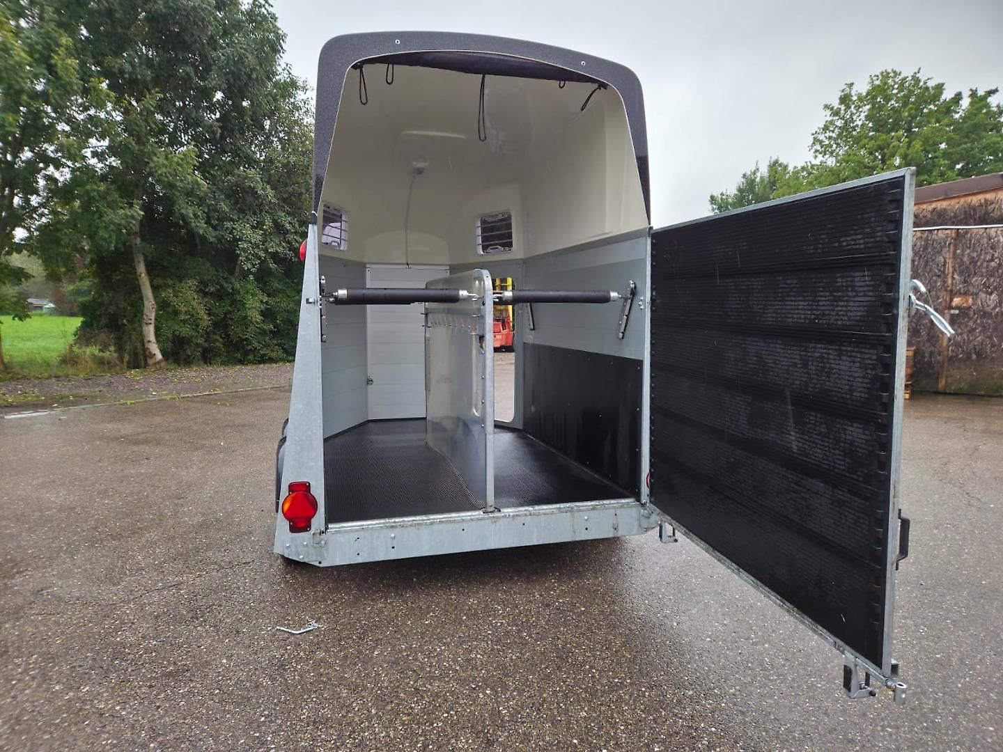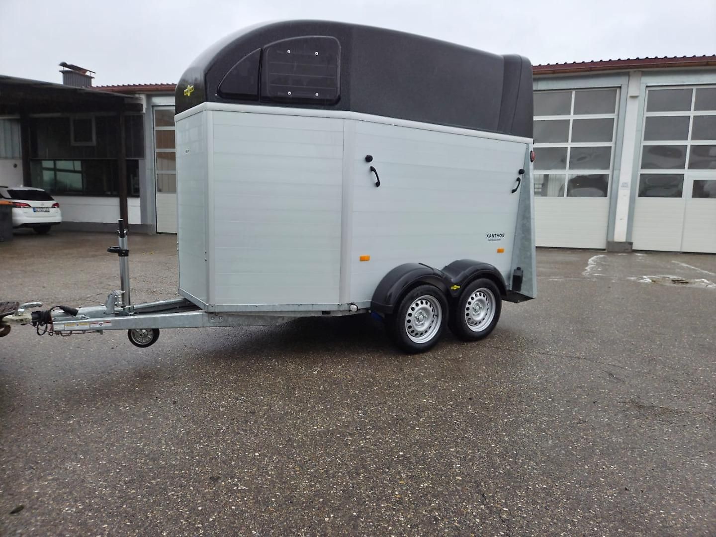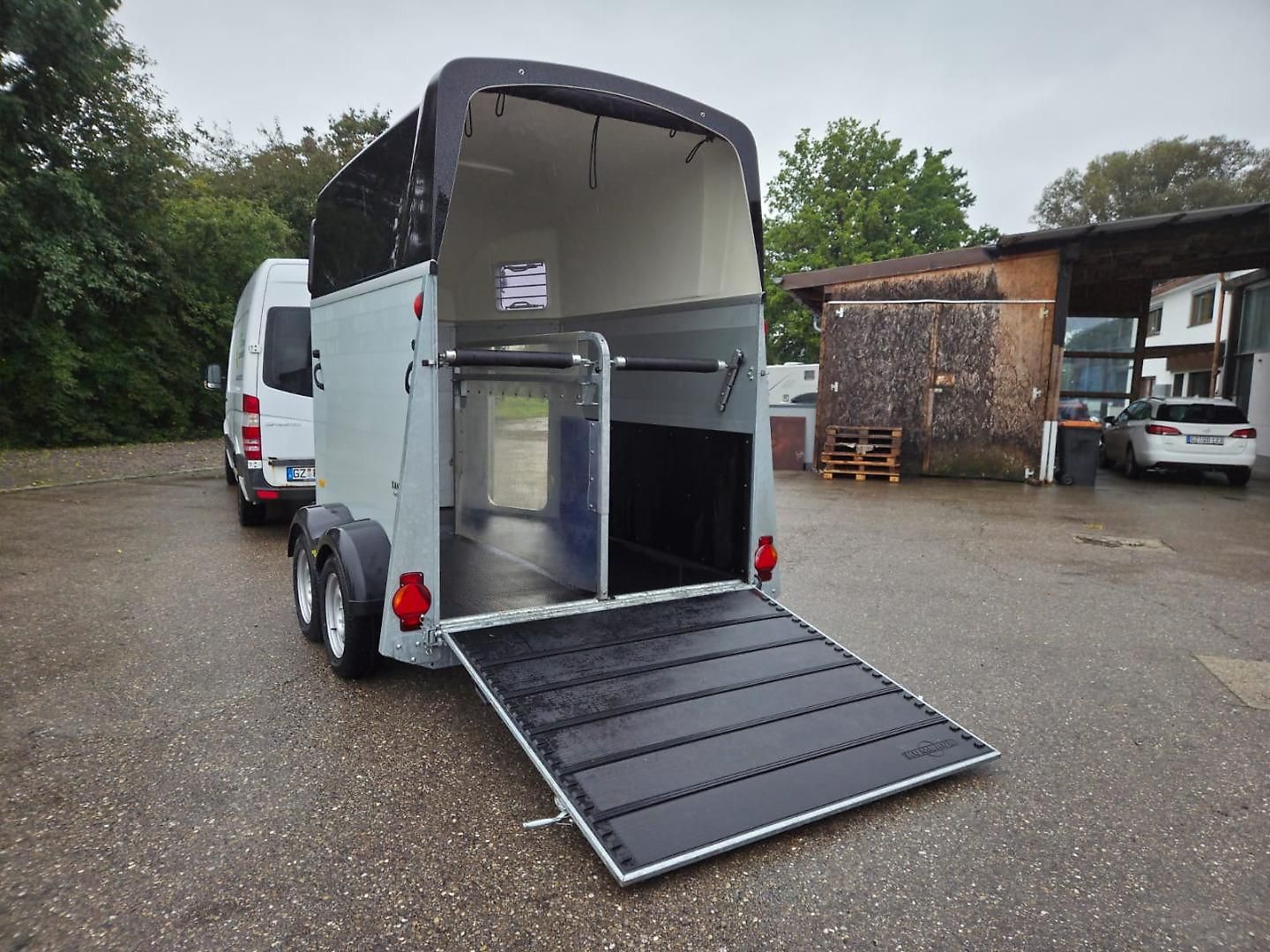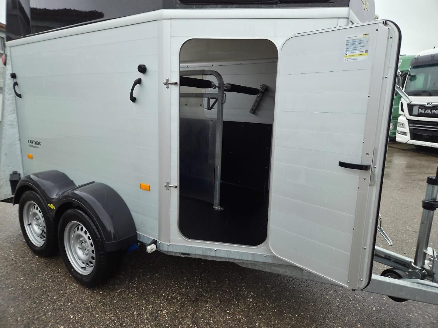 Caractéristiques : Remorque pour 2 chevaux, première main, plancher et caisse en aluminium , toit en polyester métallisé noir, vitesse maximale 100 km/h, PTAC 2700 kg , poids à vide 804 kg, charge utile 1896 kg , dimensions hors tout 4619 mm x 2233 mm x 2800 mm, dimensions intérieures 3157 mm x 1714 mm…