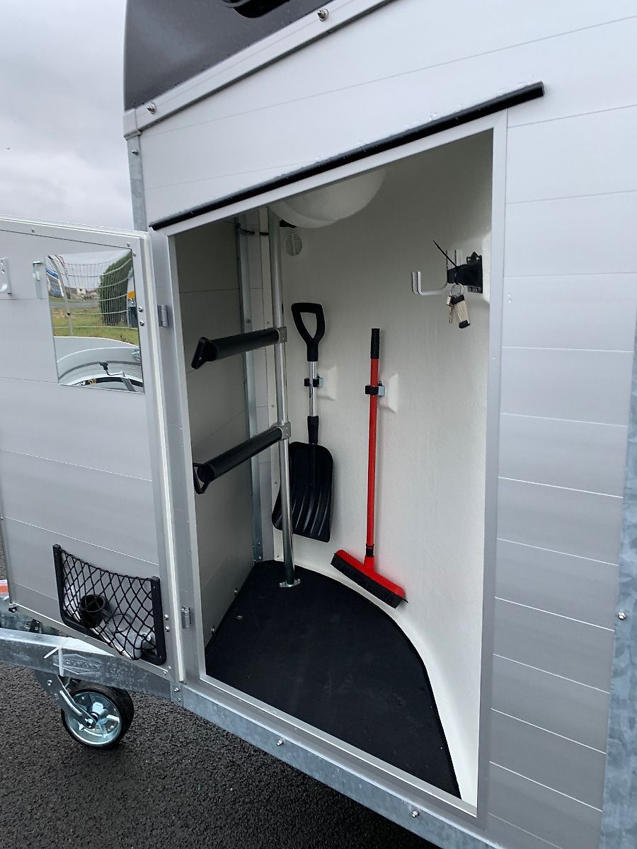 Carrosserie : Aménagement intérieur et châssis standard . Équipement standard Champion Esprit argent et noir (20). Couleur de la capote : argent métallisé. Couleur du hayon/bâche : bâche (sans filet). Garde-boue : garde-boue simples en plastique noir . Ventilation : fenêtre ouvrante sur la capote en polyester . Parois latérales : hauteur 1,50 m, aluminium anodisé. Parois latérales : porte d’entrée à droite, verrouillable / système de…
